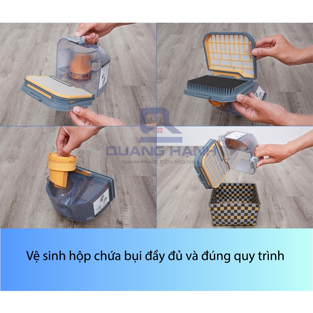 Hộp chứa bụi có dung tích 1.6 lít, chứa được lượng lớn bụi không mất nhiều thời gian đổ bụi nhiều lần, dễ làm sạch