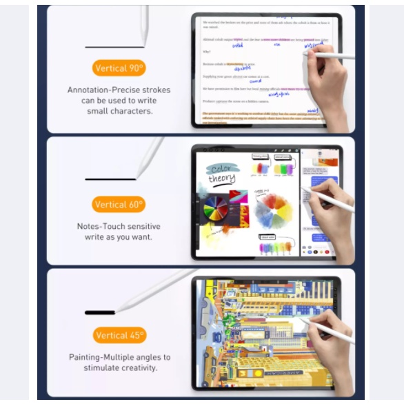 - Bút cảm ứng Baseus Smooth Writing Capacitive Stylus được trang bị Sensor cảm ứng độ nghiên của thân bút và lực nhấn khi sử dụng để tạo ra các nét vẻ đậm nhạt khác nhau . Mang đến trải nghiệm sử dụng như bút thật . Sản phẩm có 2 phiên bản Standard (chỉ dùng được trên các dòng iPad Pro) và Plus (được trang bị thêm 1 đầu cảm ứng thứ 2 , tương thích với hầu tư tất cả các loại màn hình cảm ứng điện dung trên Smartphone/ Tablet Android ) . Thân bút cũng được trang bị nam châm, có thể hít được trên khung viền đối với iPad các dòng có hỗ trợ.