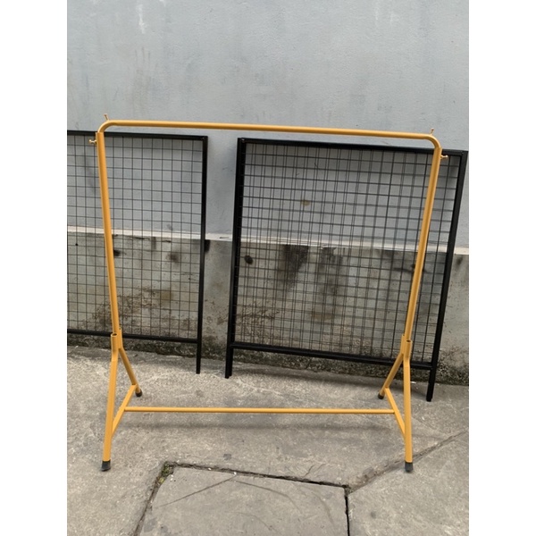 Kệ chữ y màu vàng treo quần áo shopKệ cao chỉnh từ 1.4-1.6m dài 1.2m