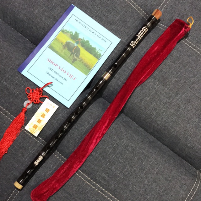 - Sáo dizi giả ngọc màu đen được chế tác từ trúc quế già, sơn phủ siêu lì, cực kỳ bền màu.