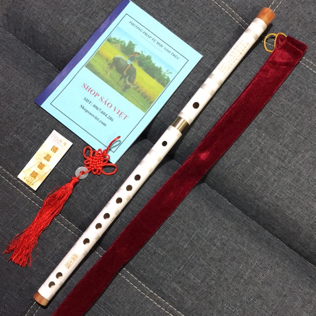 - Sáo dizi giả ngọc màu trắng được chế tác từ trúc quế già, sơn phủ siêu lì, cực kỳ bền màu.