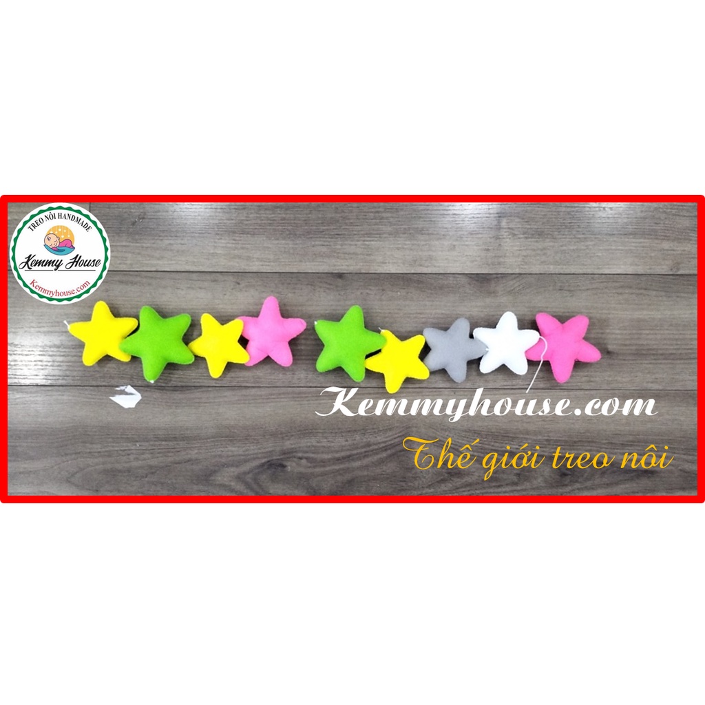Ngôi sao được may thủ công từ bàn tay khéo léo của những người thợ Việt Nam.Nguyên liệu vô cùng thân thiện và an toàn: vải nỉ, bông gòn.