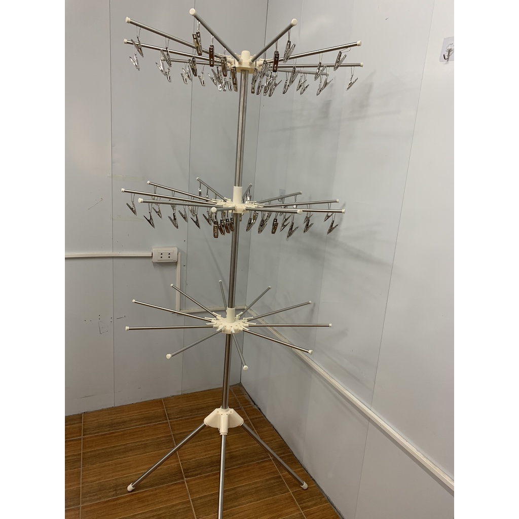 >> Cây phơi quần áo 3 tầng với 3 giá phơi đồ cực kì chắc chắn và tiện dụng, có thể gập gọn khi không sử dụng, móc trùm có thể tháo rời làm 1 móc treo tác biệt.