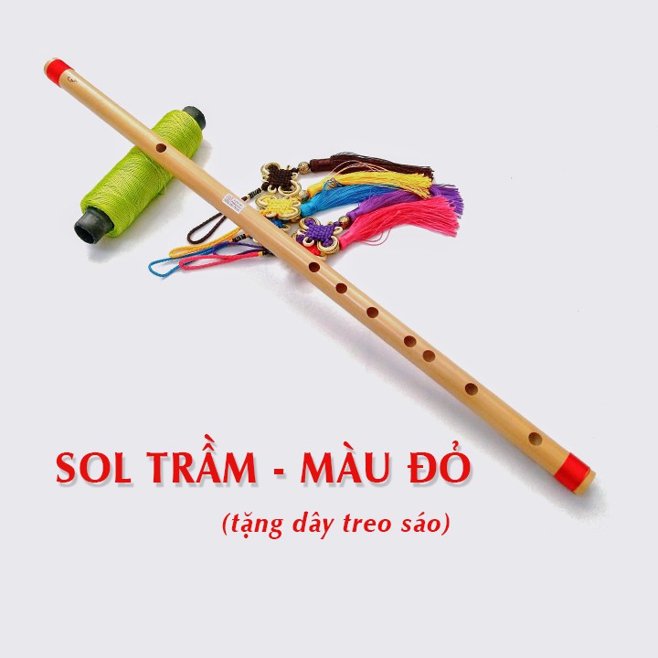+ Kết cấu Sáo SOL TRẦM: cây sáo bao gồm 6 lỗ bấm, 1 lỗ thổi và các lỗ định âm treo dây.