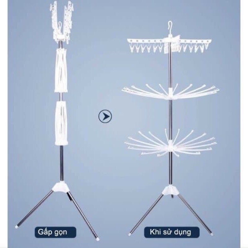 ➡ Cây phơi quần áo 3 tầng với 3 giá phơi đồ cực kì chắc chắn và tiện dụng, có thể gập gọn khi không sử dụng, móc trùm có thể tháo rời làm 1 móc treo tác biệt. Sản phẩm có kích thước gọn nhẹ, giúp bạn dễ dàng di chuyển khi cần thiết.