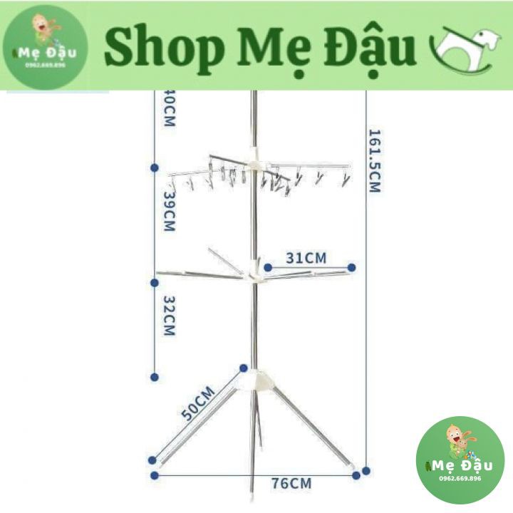 Cây sào phơi đồ INOX đa năng thông minh, 3 tầng gấp gọn treo đồ cho bé sơ sinh