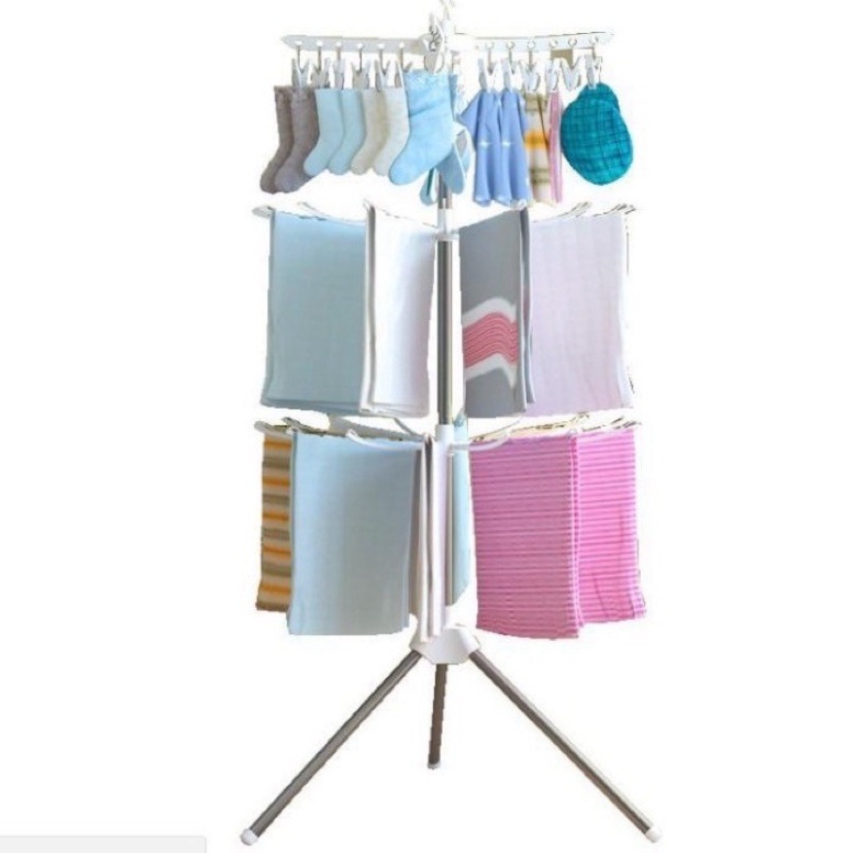 Cây Phơi Đồ 3 Tầng xoay 360 độ, gấp gọnCây phơi kèm kẹp: gồm giá phơi và 20 kẹp tha hồ phơi nhé.