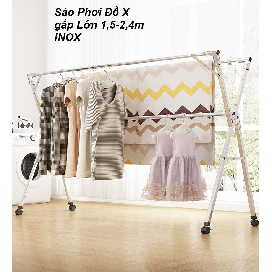 Nhà cửa & Đời sống > Sắp xếp nhà cửa > Mắc áo || Sào Phơi Quần Áo xếp gọn đa năng chịu lực size Lớn 1,5-2,4m INOX có thanh ngay giữa (Có tặng kèm móc)Còn hàng
