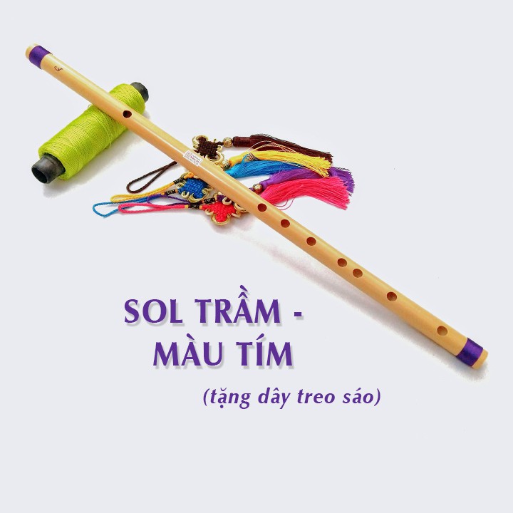 + Kết cấu Sáo SOL TRẦM: cây sáo bao gồm 6 lỗ bấm, 1 lỗ thổi và các lỗ định âm treo dây.