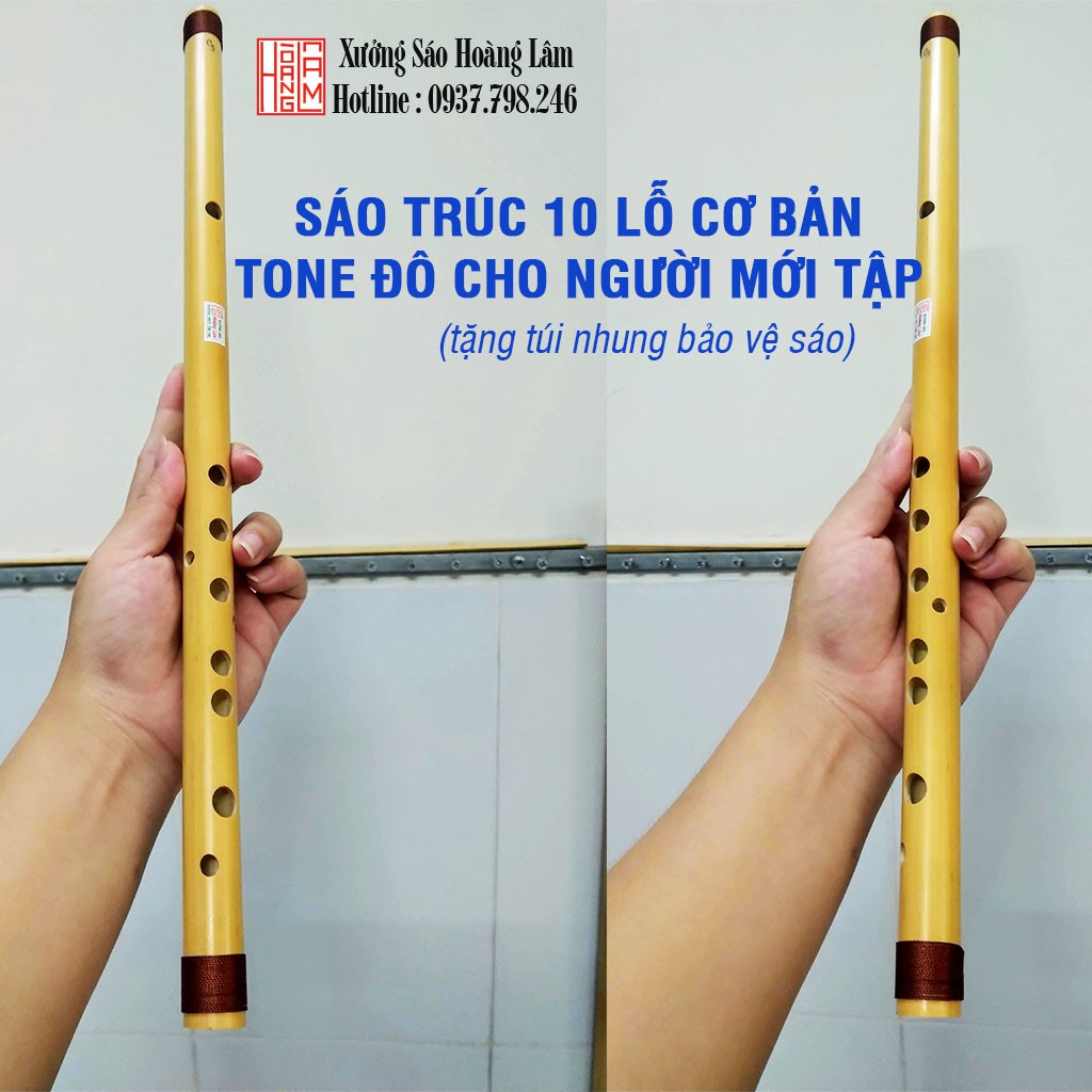 Sáo trúc Hoàng Lâm 10 lỗ cơ bản, tone đô C5 chuẩn âm, giá rẻ cho người mới tập chơi HL20N tặng túi nhung đựng bảo vệ sáo