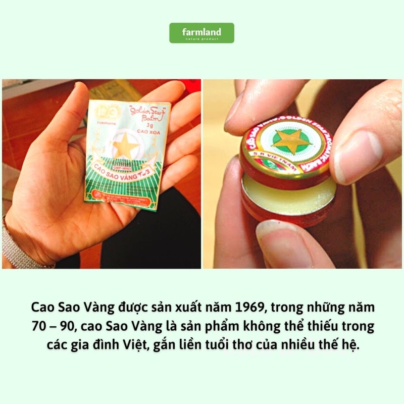 Xuất phát từ thương hiệu “Cao sao vàng” lừng lẫy tại Việt Nam thời điểm những năm 90 của thế kỷ trước, sau một thời gian dài làm mưa làm gió tại thị trường nước ngoài, Golden Star trở lại thị trường trong nước, kế thừa tất cả những tinh túy của "Cao sao vàng" truyền thống, kết hợp với công nghệ sản xuất hiện đại chuyển giao từ Châu Âu để mang đến những sản phẩm với chất lượng vượt trội.