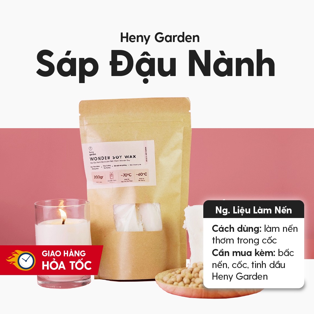 Sáp Đậu Nành Làm Nến (Soy Wax) - Tặng Tinh Dầu Mẫu Thử – Nguyên Liệu Làm Nến Thơm Cao Cấp Heny Garden