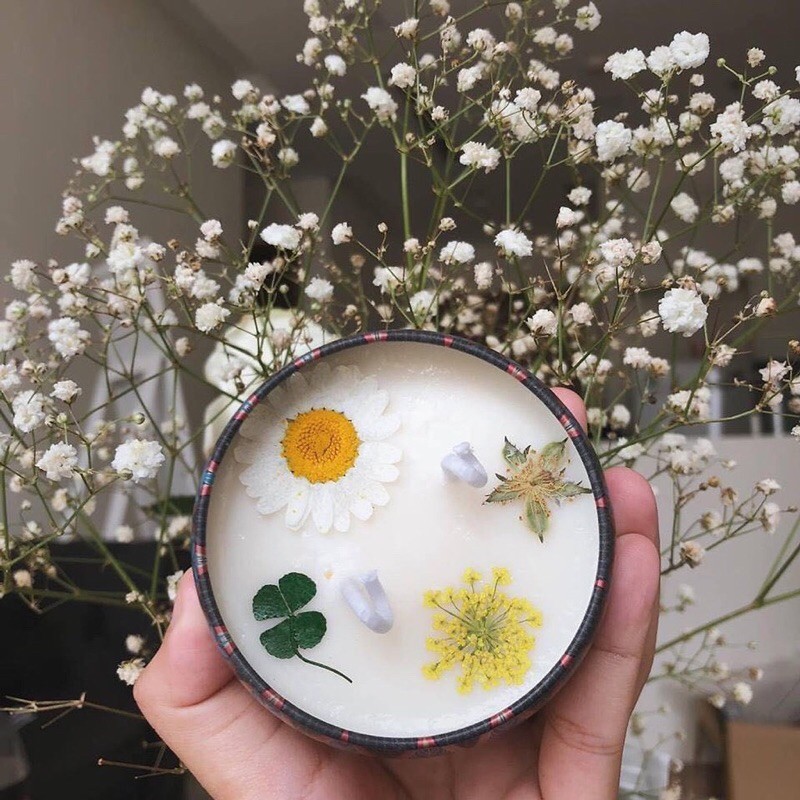 Nến thơm phòng tinh dầu thiên nhiên cao cấp Hương thơm thư giãn dịu nhẹ, không nồng không gắt như những loại nến thơm khác ngoài thị trườngThành phần: Được làm từ sáp đậu nành và tinh dầu thiên nhiên 100%, hoa khô trang trí.
