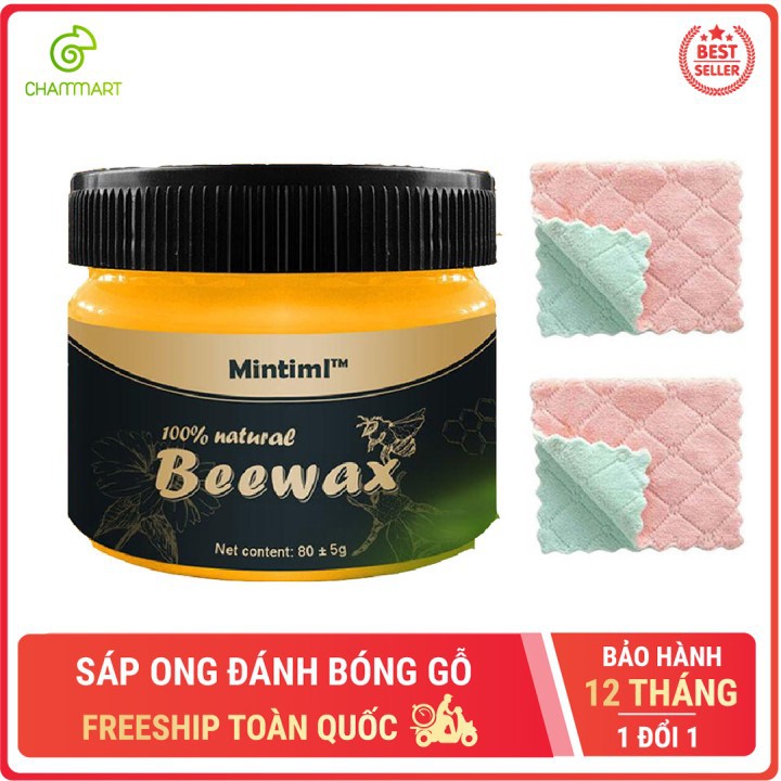 Sáp ong Beewax vệ sinh đánh bóng đồ gỗ nội thất chống thấm thành phần tự nhiên 80gr tặng kèm 2 khăn vải
