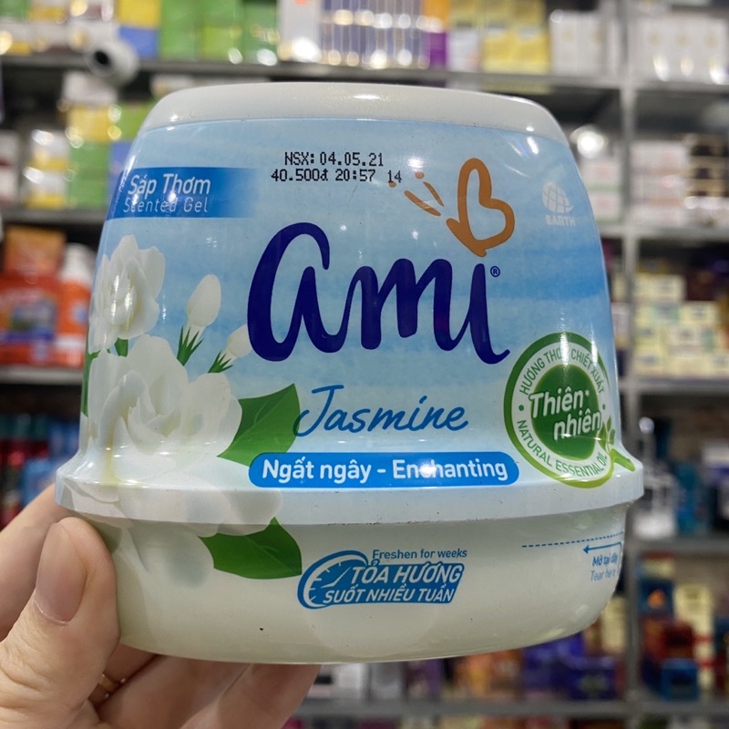 - Sáp thơm Ami Jasmaine ngất ngây 200g (Xanh ngọc) chứa tinh dầu thơm tự nhiên, giúp khử mùi và lưu hương lâu dài, không tạo cảm giác khó chịu, đau đầu như những loại sáp thơm thông thường sử dụng hương liệu hóa học.