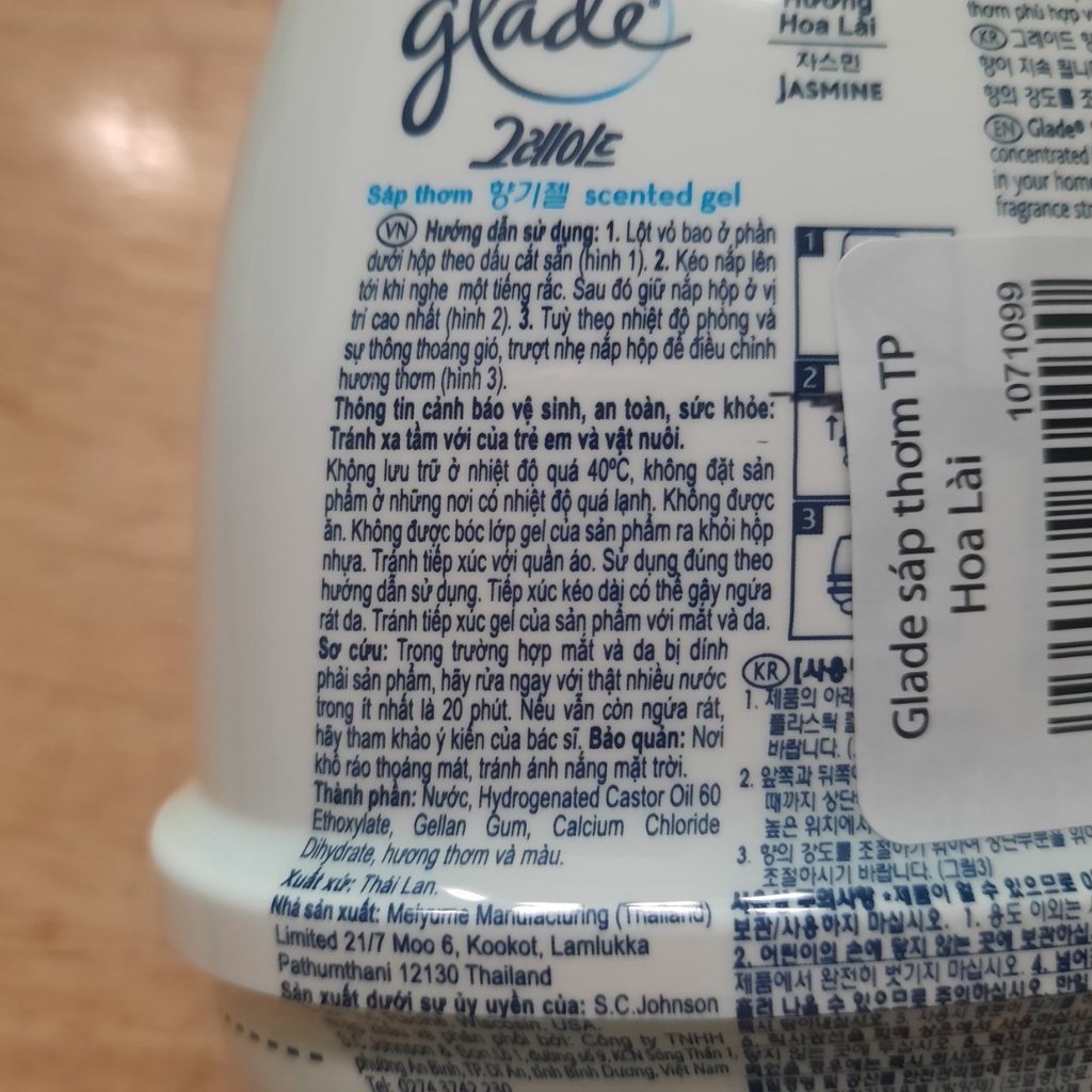 Thương hiệu: Glade là sản phẩm của cty S.C.JohnsonDòng sản phẩm: Sáp thơm Glade hương hoa Lài