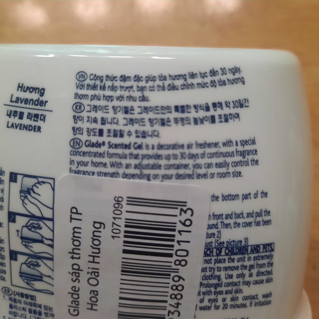 Thương hiệu: Glade là sản phẩm của cty S.C.JohnsonDòng sản phẩm: Sáp thơm Glade hương Lavander