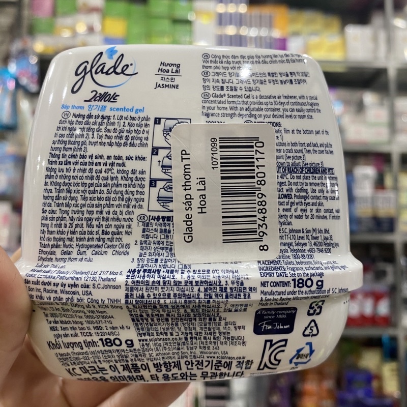 Sáp Thơm Glade Hương Hoa Lài 180g* Thành phần và công dụng: