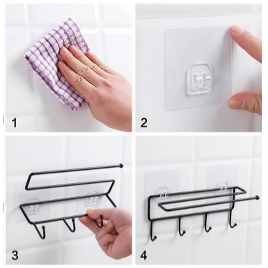 Nhà cửa & Đời sống > Dụng cụ chăm sóc nhà cửa > Dây phơi & giá phơi quần áo || Thanh sắt treo đồ dán tường gồm 4 móc kèm giá phơi khăn tiện dụng màu trắng/đenCòn hàng