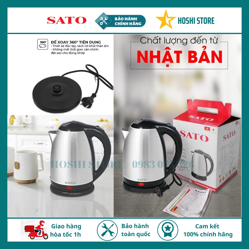{SATO VIỆT NHẬT} Ấm siêu tốc. Bình đun siêu tốc 1.8L SATO 17ST42 /17ST46 công nghệ Việt Nhât cao cấp, 2 lớp siêu bền