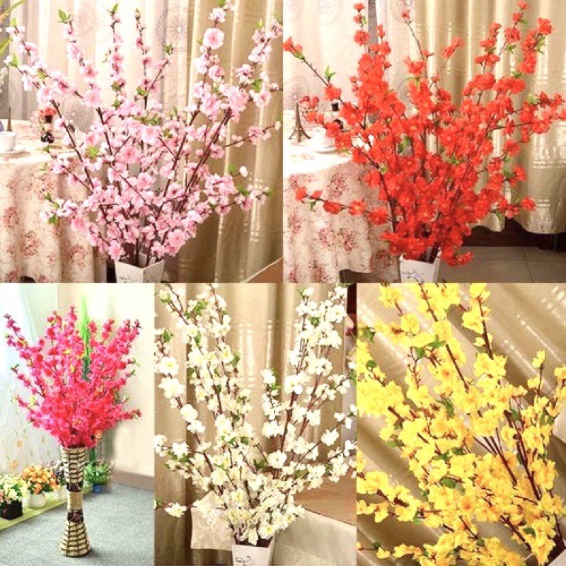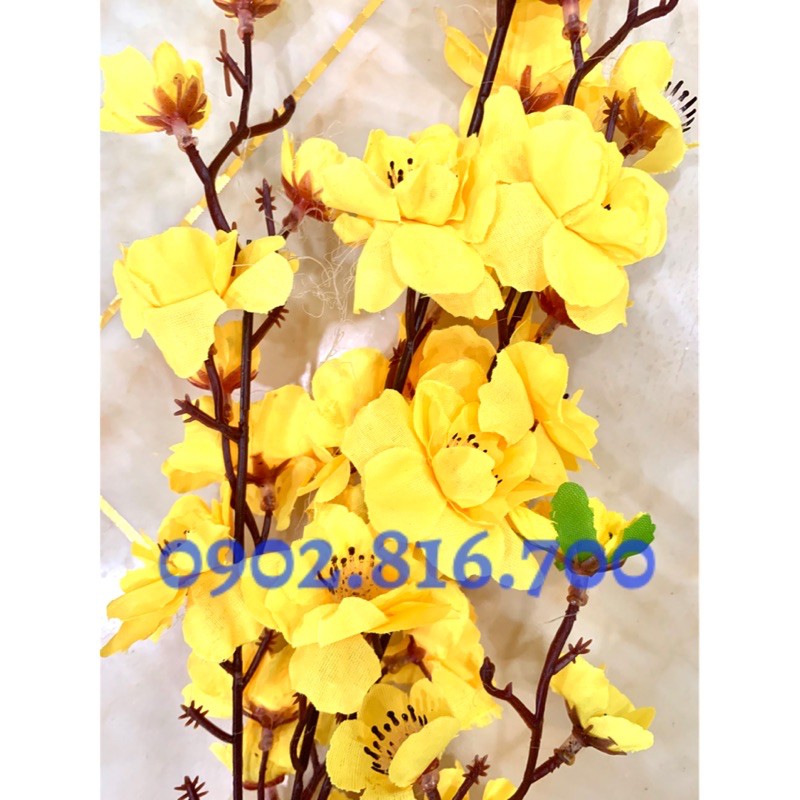 Cành mai - cành đào giả 3 lớp 5 nhánh hàng đẹp cao cấp phụ kiện trang trí tếtMàu sắc : vàng - hồng phấn - hồng đậm - đỏ