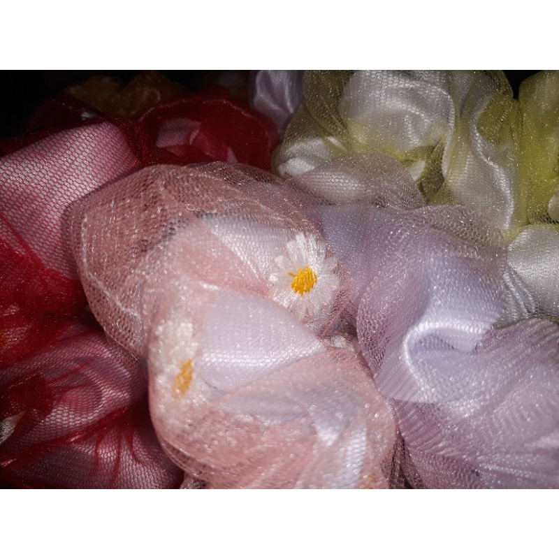 Scrunchies, crunchies đồ buộc tóc Hoa cúc thêu hai lớp