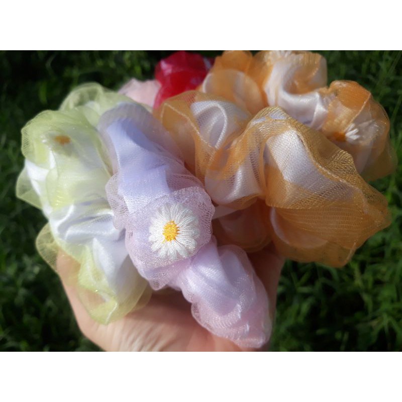 Sở thích & Sưu tầm > Dụng Cụ May Vá || Scrunchies, crunchies đồ buộc tóc Hoa cúc thêu hai lớpCòn hàng