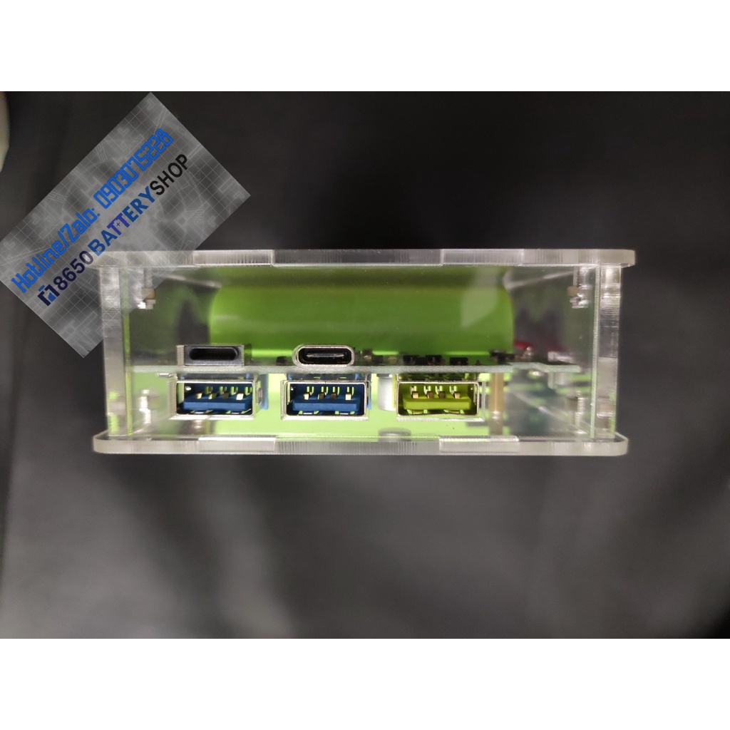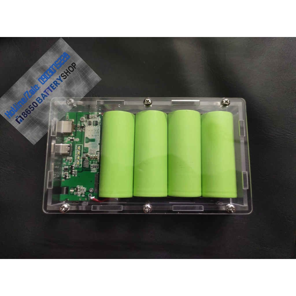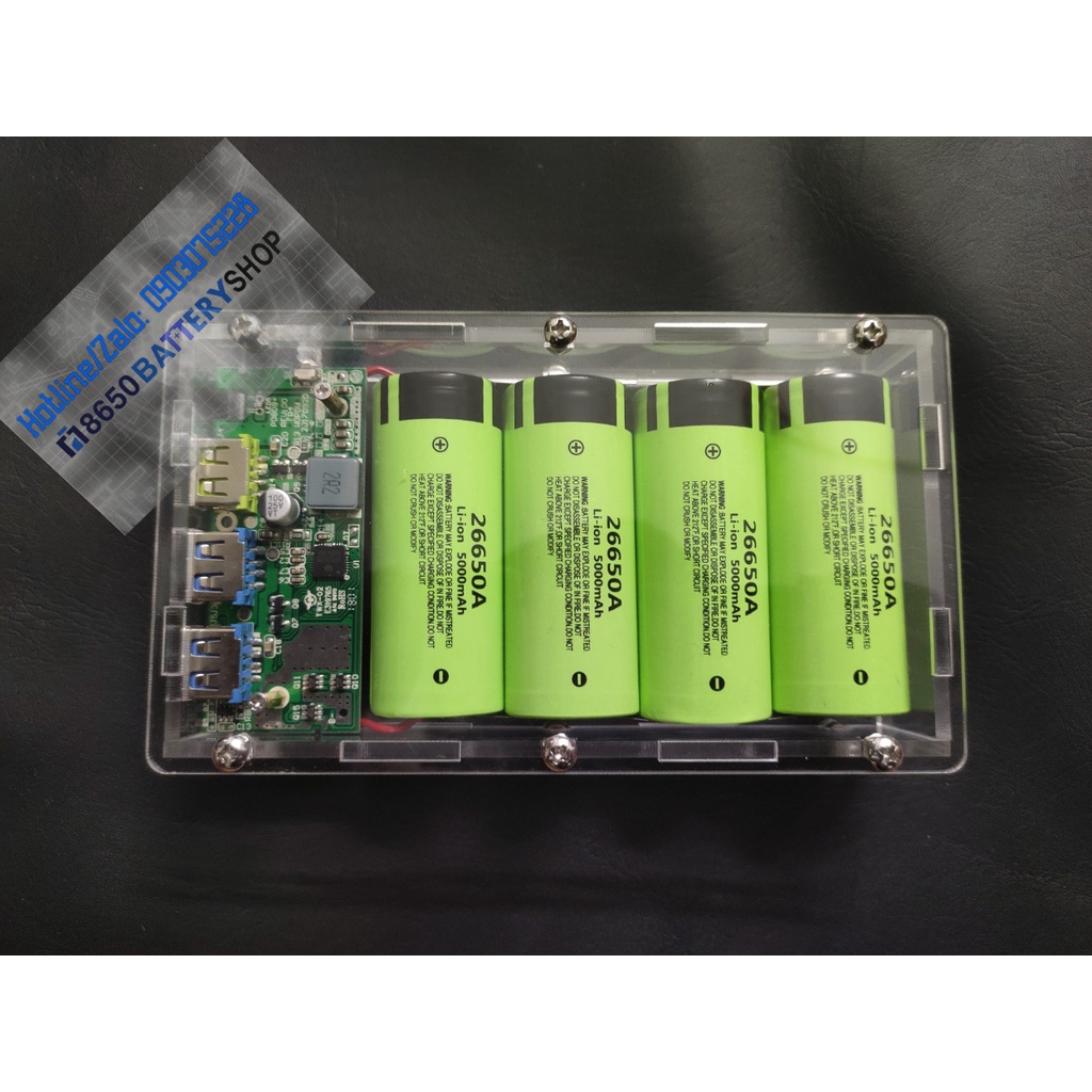 Box sạc dự phòng bằng mica trong suốt sử dụng 4 pin panasonic 26650 dung lượng 20.000mah mới 100%. Có sạc nhanh QC 3.0