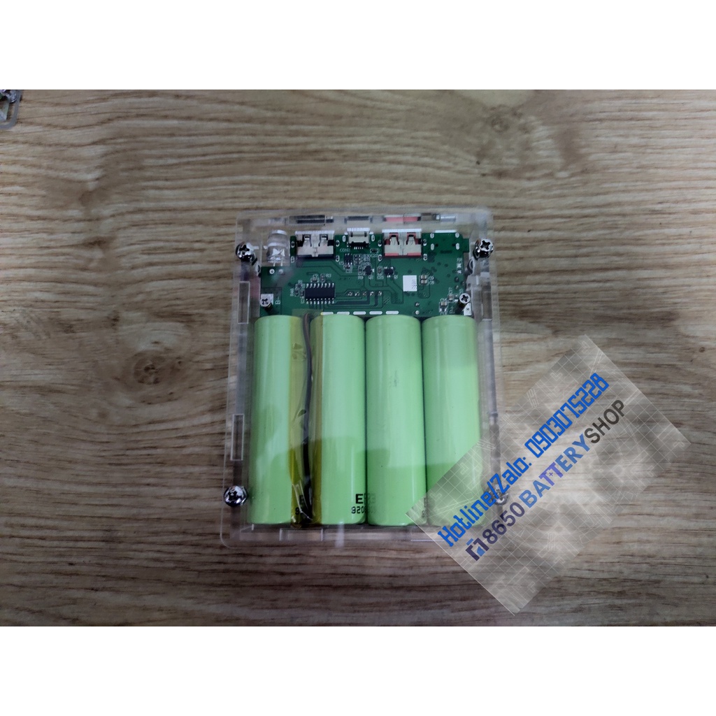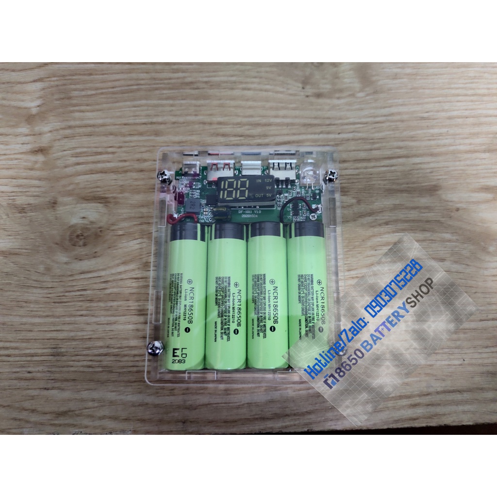 [SDP4] Box sạc dự phòng bằng mica sử dụng 4 pin 18650 14.000mah mạch sạc nhanh QC 4.0 5v 9v 12v báo pin bằng đồng hồ led