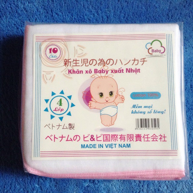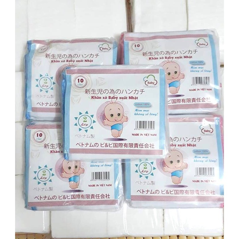 Gói 10 chiếc khăn xô cho bé, viền xanh hoặc hồng.