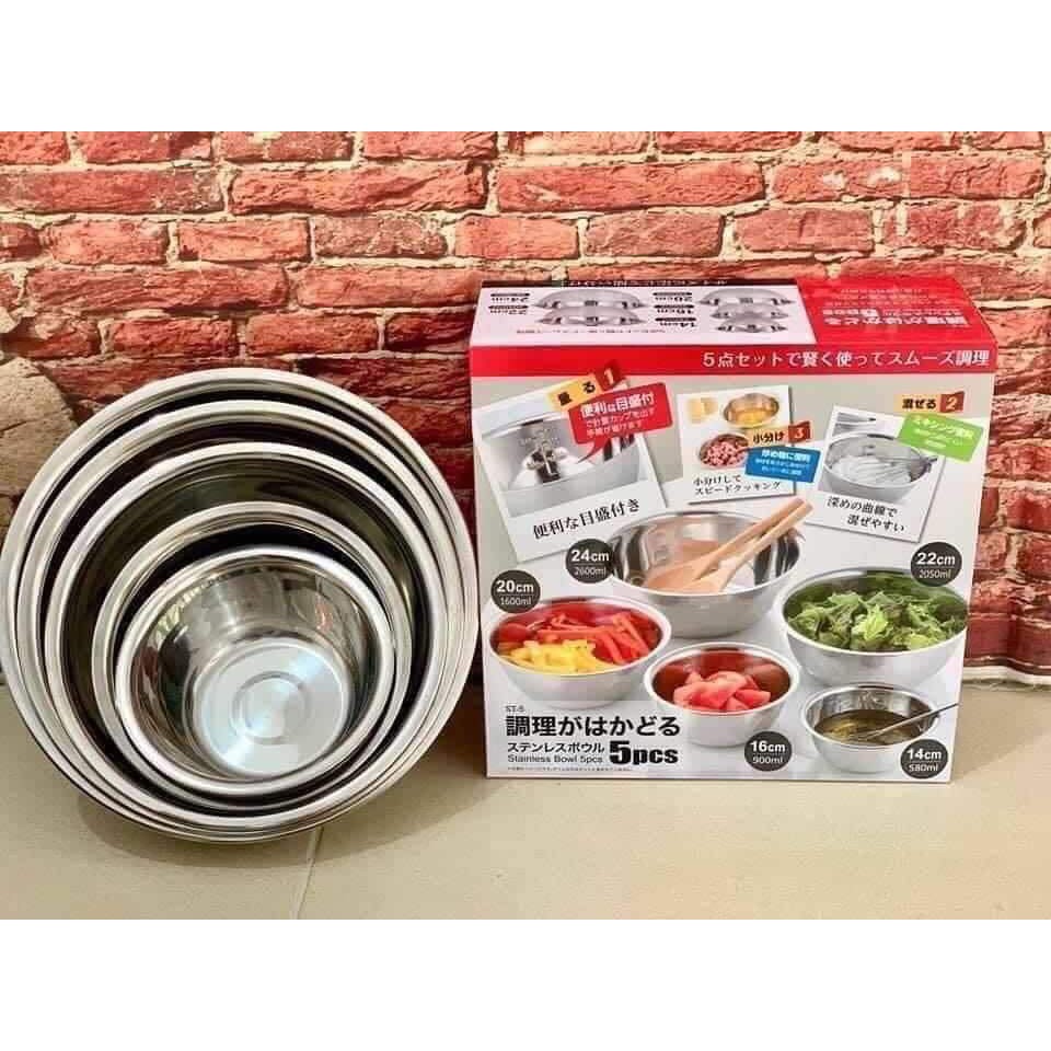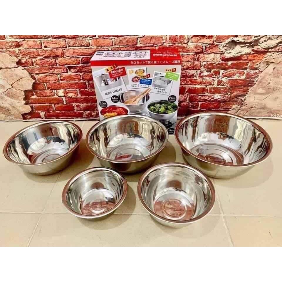 SÉT 5 TÔ INOX CAO CẤP- HÀNG XUẤT NHẬTCác chị em dùng bộ này để chế biến đồ ăn hơi bi ưng cái bụng đó ah, có đủ loại kích thước tiện dụng luôn.