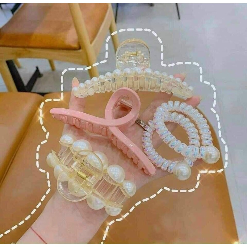 🌸🌸🌸 Mỗi set gồm: 3 ngoạm tóc + 2 dây buộc tóc như hình style Hàn xẻng cực xinh