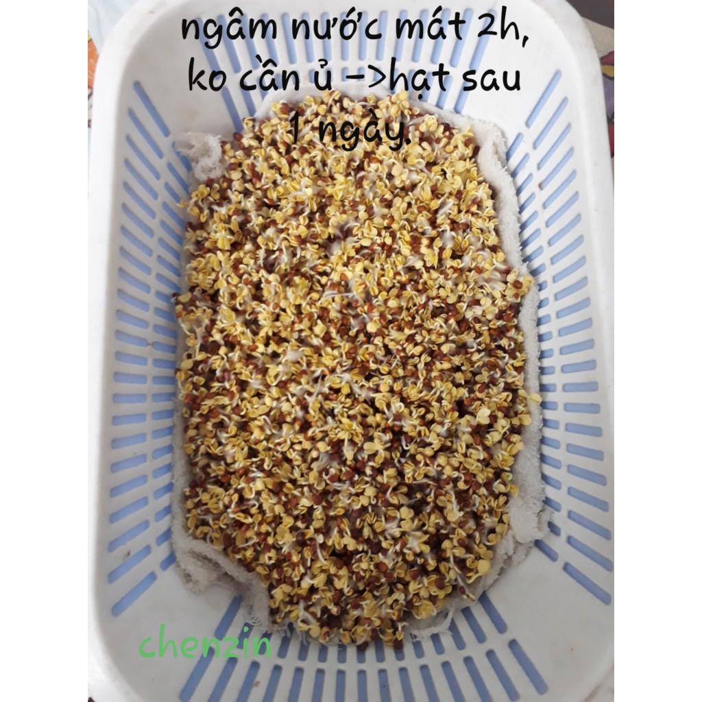 Sau khi ngâm vớt hạt ra rửa sạch, rồi trải đều hạt vào rổ (nếu có khăn/ lưới thì trải hạt phía trên khăn/lưới).