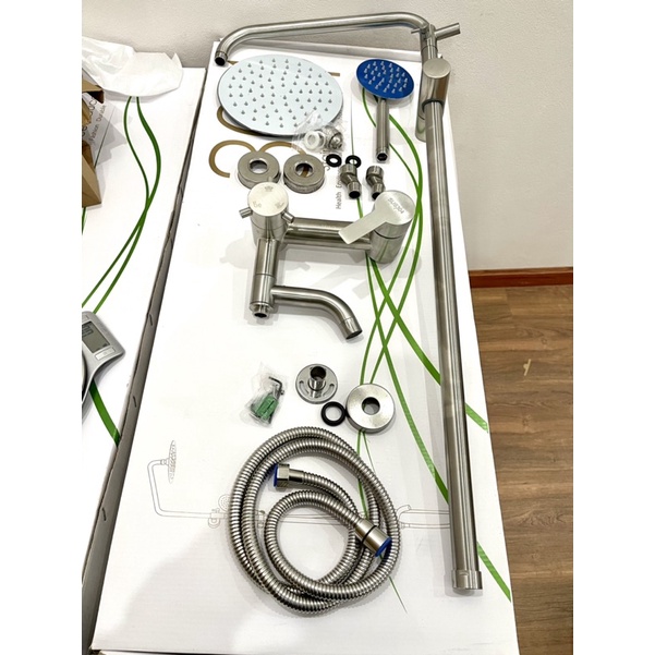 +Bộ gồm: 1 củ sen, 1 dây dẫn nước, 1 tay sen, 1 bát sen, 1 ống đứng và các đầu ốc đi kèm, sản phẩm đã đầy đủ khách chỉ việc lắp đặt