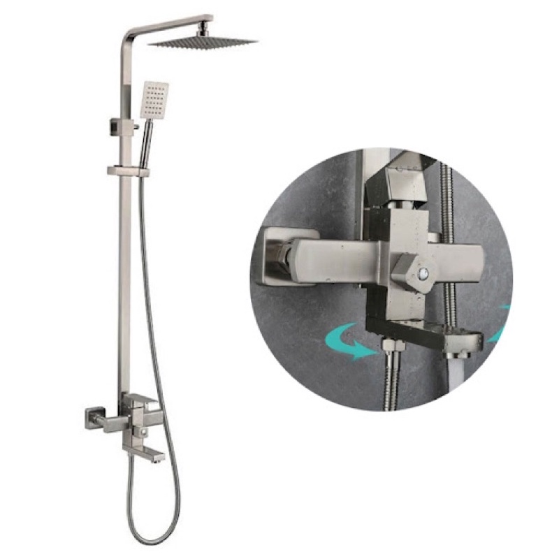 Chất liệu sen cây tắm đứng nóng lạnh: tất cả các chi tiết sản phẩm đều được làm từ INOX 304, không hoen gì, độ sáng bóng cao, dễ chùi rửa, không dính vết bẩn
