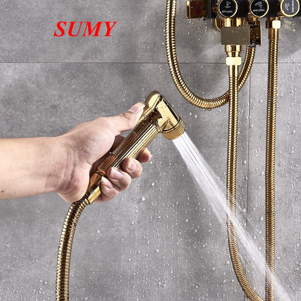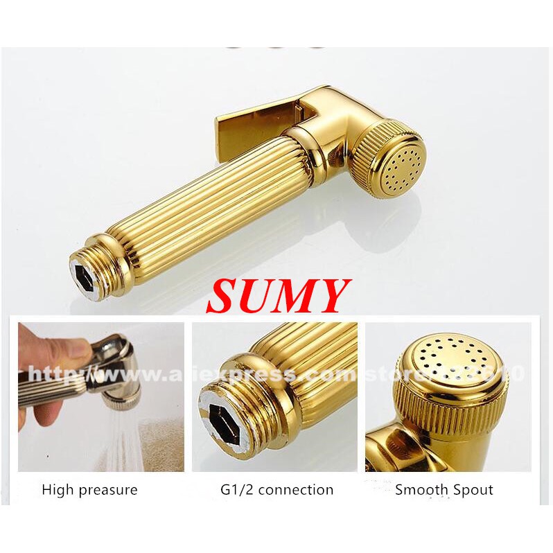 6. Xịt bằng đồng + Dây sen chun (được làm bằng inox mạ crom vàng) chống xoắn, thuận tiện trong sử dụng