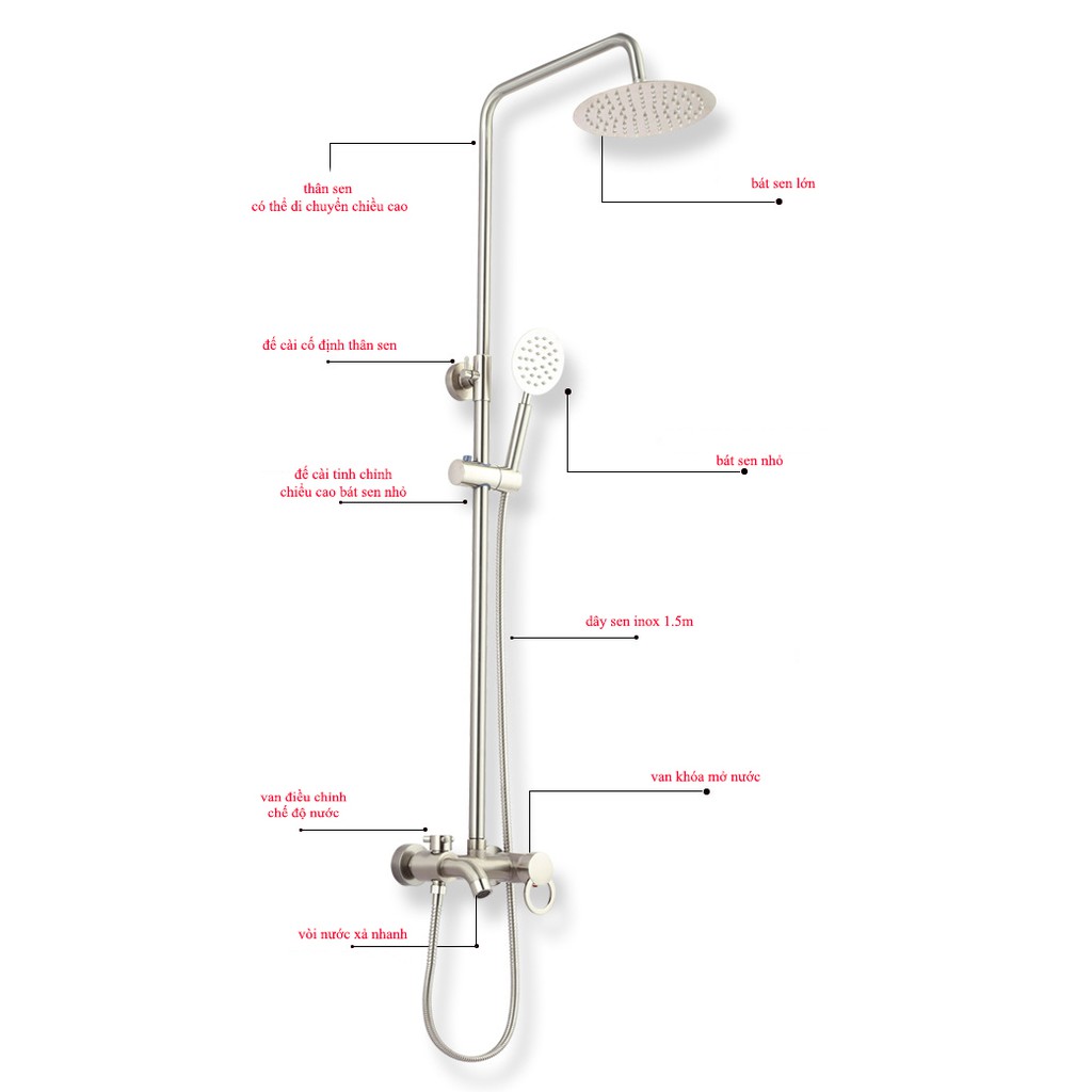 Thông tin sản phẩm Bộ sen cây tắm nóng lạnh SC 03 (Trắng)Sản phẩm được làm từ đồng và inox 304