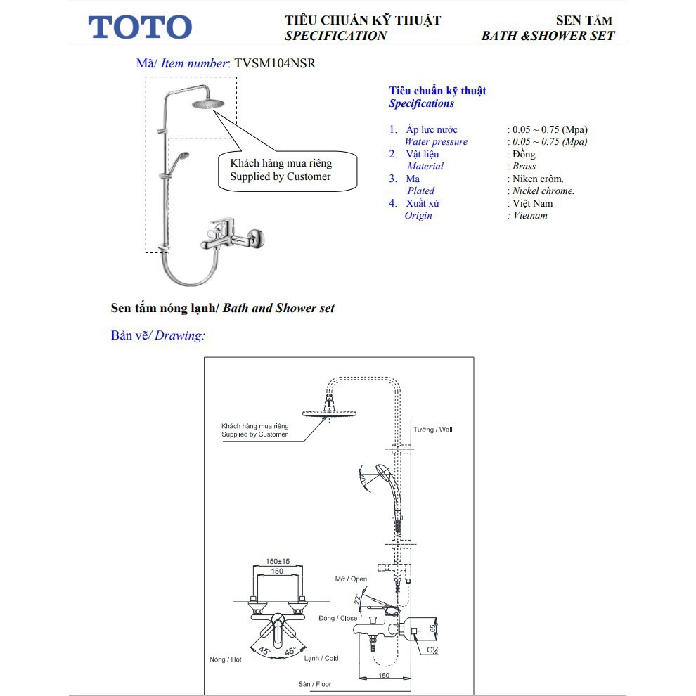 Nhà cửa & Đời sống > Đồ dùng phòng tắm > Vòi sen & vòi xịt vệ sinh || Sen Cây Nóng Lạnh TOTO TVSM104NSR/DM907CSCòn hàng
