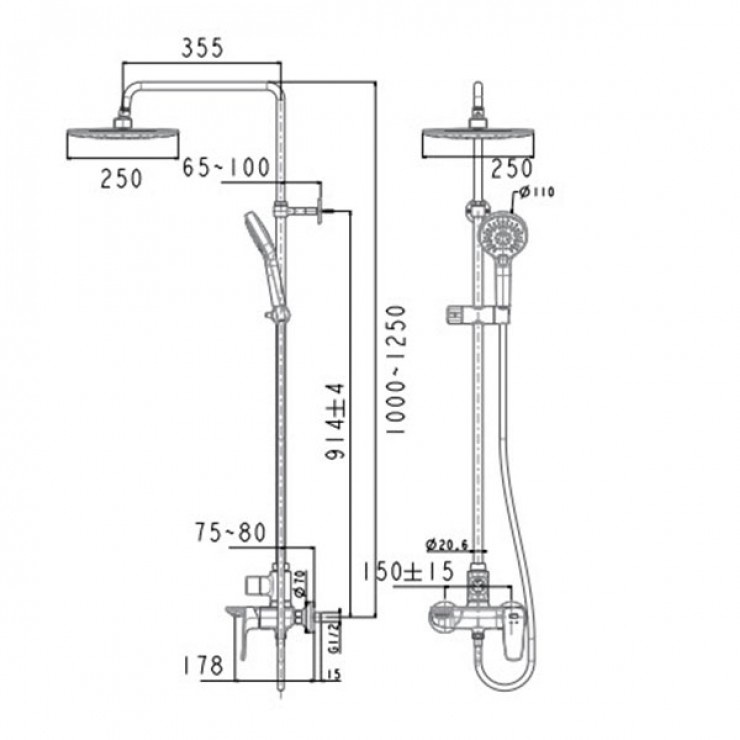 Kích thước tay sen: 110 mm