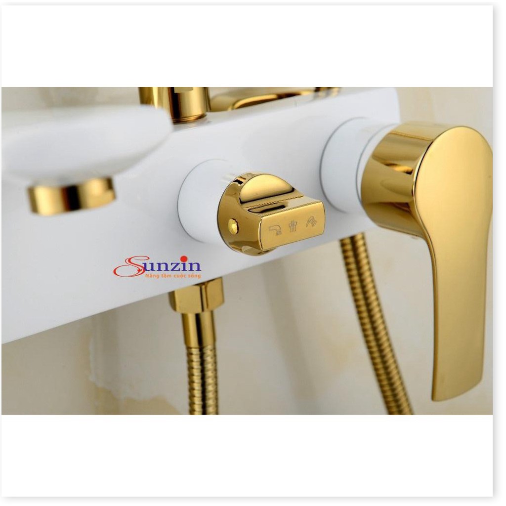 Giới thiệu Sen cây phun mưa Sunzin, chất liệu đồng, sơn tĩnh điện (trắng vàng)