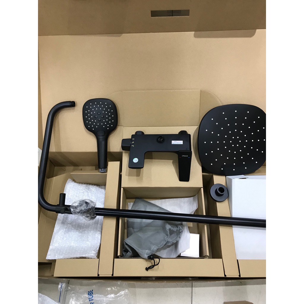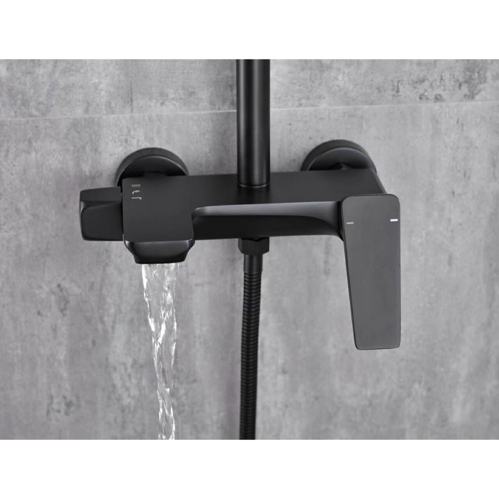 Bộ sen cây tắm nóng lạnh đen và crom chuẩn đồng thau nguyên chất cao cấp