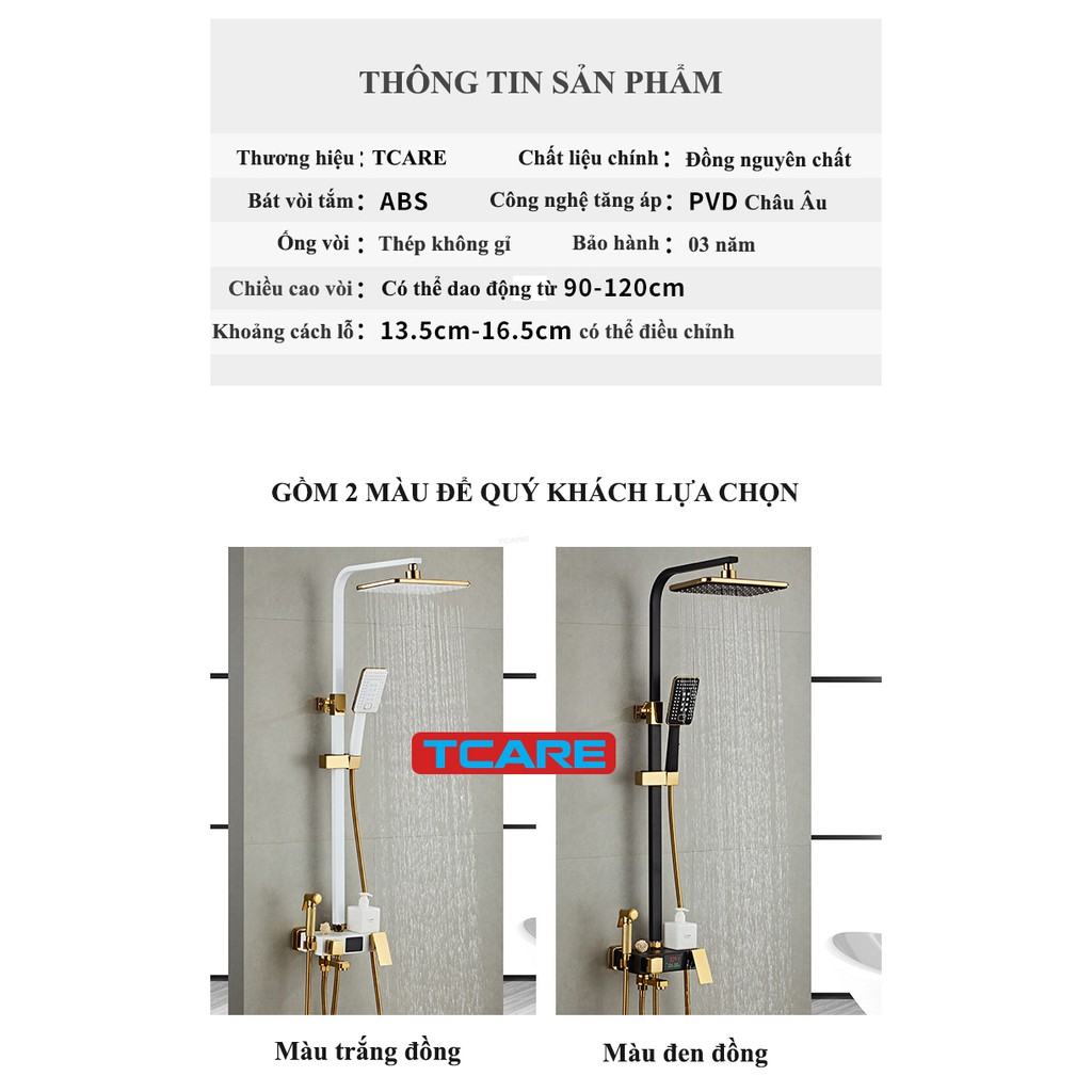 Giới thiệu Bộ Sen cây tắm đứng, bộ sen vòi Điều chính nhiệt độ Hiển thị số Tcare - Ống HCN