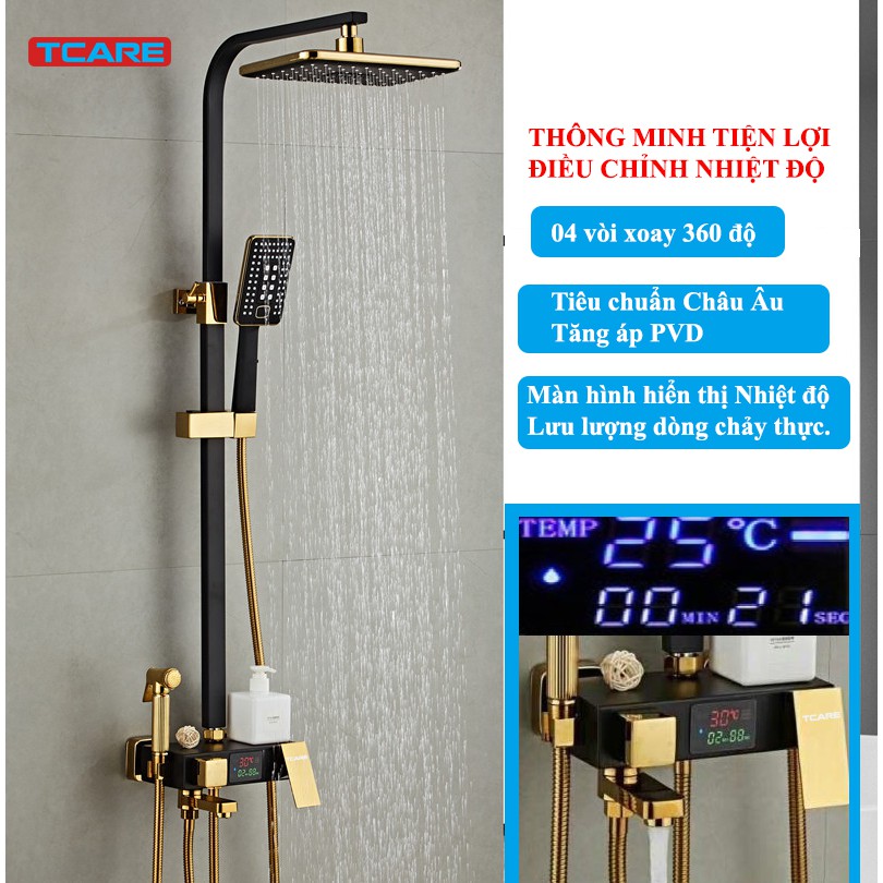 Bộ Sen cây tắm đứng, bộ sen vòi Điều chính nhiệt độ Hiển thị số Tcare - Ống HCN