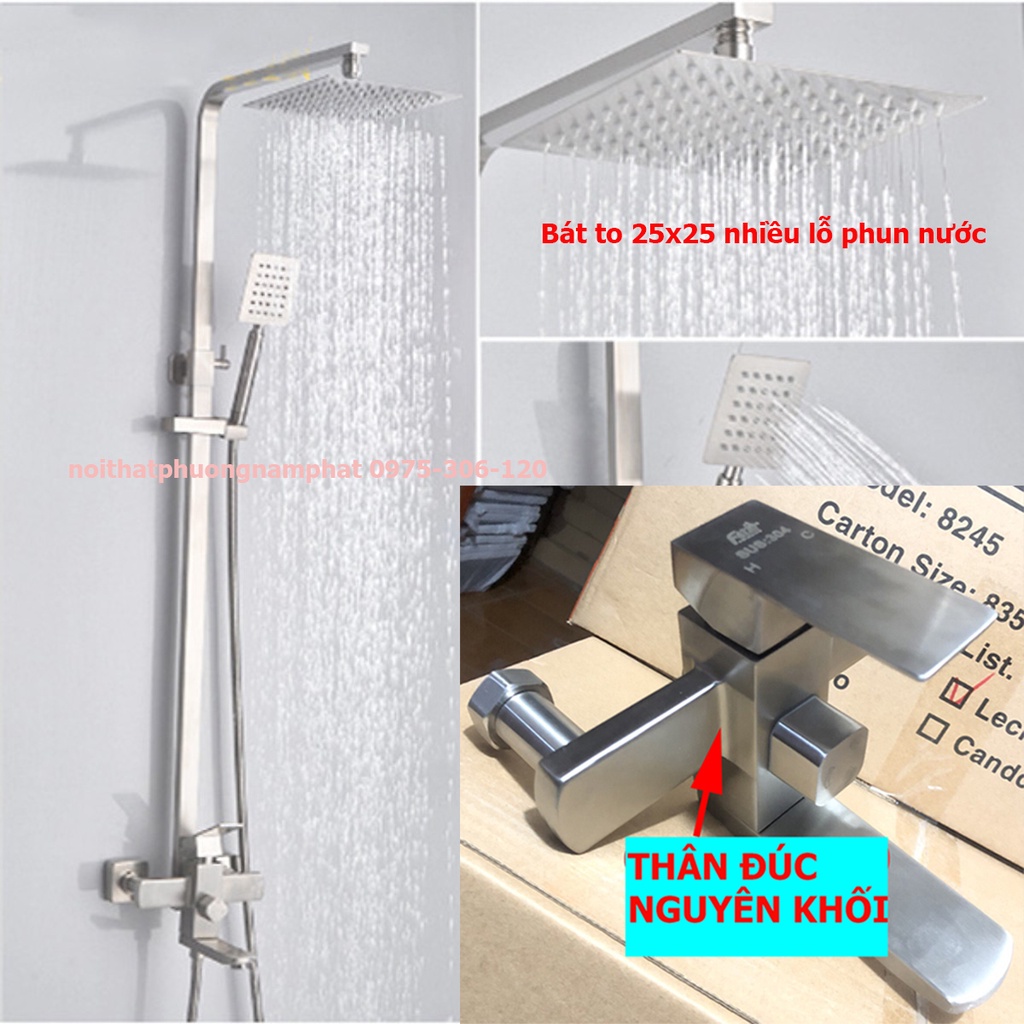 Giới thiệu Bộ Sen Cây Tắm Đứng Nóng Lạnh INOX 304 N1005 Fotar Và Tay Sen và Bát Sen SEN CÂY VUÔNG, inox 304 chống han rỉ