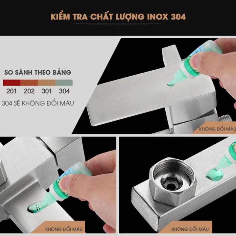 LƯU Ý: Trên thị trường hiện nay có rất nhiều sản phẩm Sen cây tắm đứng nóng lạnh được làm từ Kim Loại Mạ Angtimon, nên có giá thành Rất Rẻ. Sau 6 đến 12 tháng sử dụng, lớp mạ đó sẽ bị bong rộp và hỏng. Với INOX 304 không bị hiện tượng trên vì là chất liệu đồng nhất. HÃY LÀ NGƯỜI TIÊU DÙNG THÔNG THÁI