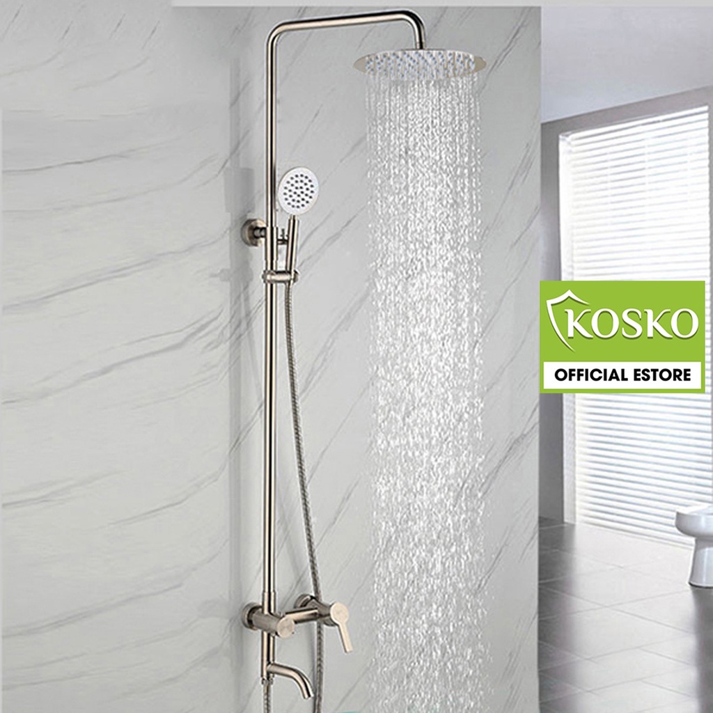 Bộ sen cây tắm đứng nóng lạnh KOSKO inox sus 304 tròn lệch (Bảo hành toàn quốc 2 năm), vòi sen tăng áp