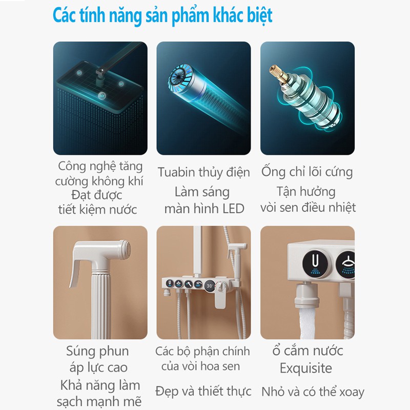✅ Sen Tắm - Bộ sen tắm cố định nhiệt độ có 4 chế độ : Bát sen to, Vòi hoa sen, Vòi xả nước, Vòi xịt vệ sinh.