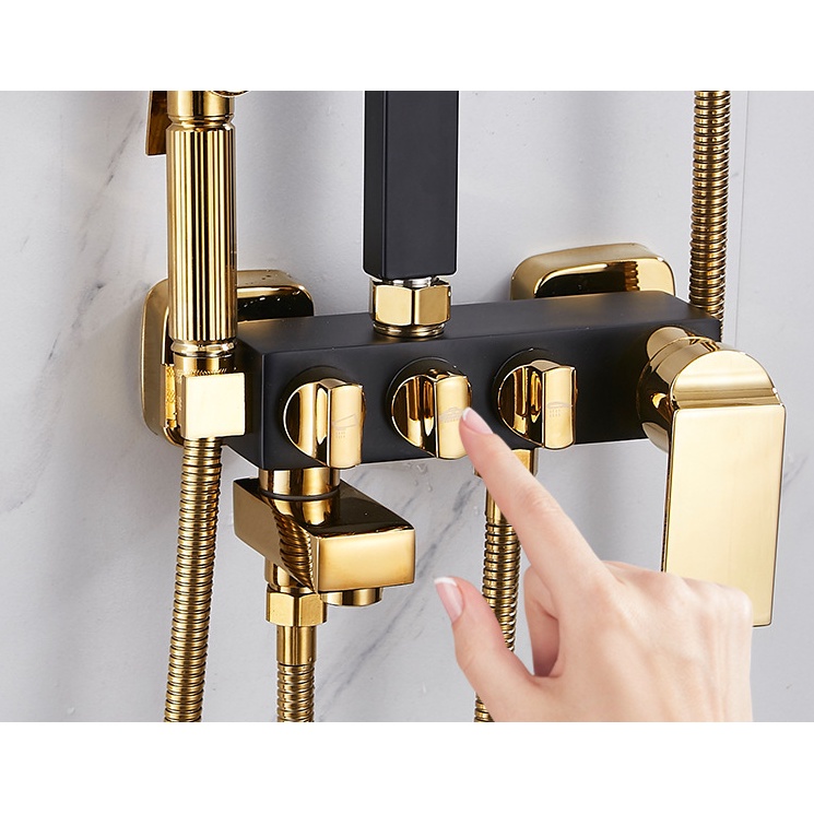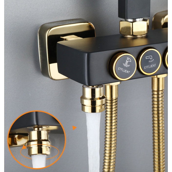 👉Chất Liệu: Củ Sen Làm Bằng Đồng Nguyên Khối, Tay sen và bát sen chất liệu nhựa ABS cao cấp chịu nhiệt, chống va đập rất tốt và bền, Cây Sen: Chất Liệu Inox 304 Phun Sơn Tĩnh Điện Màu Đen, Dây Sen: Chất Liệu Inox Mạ Vàng