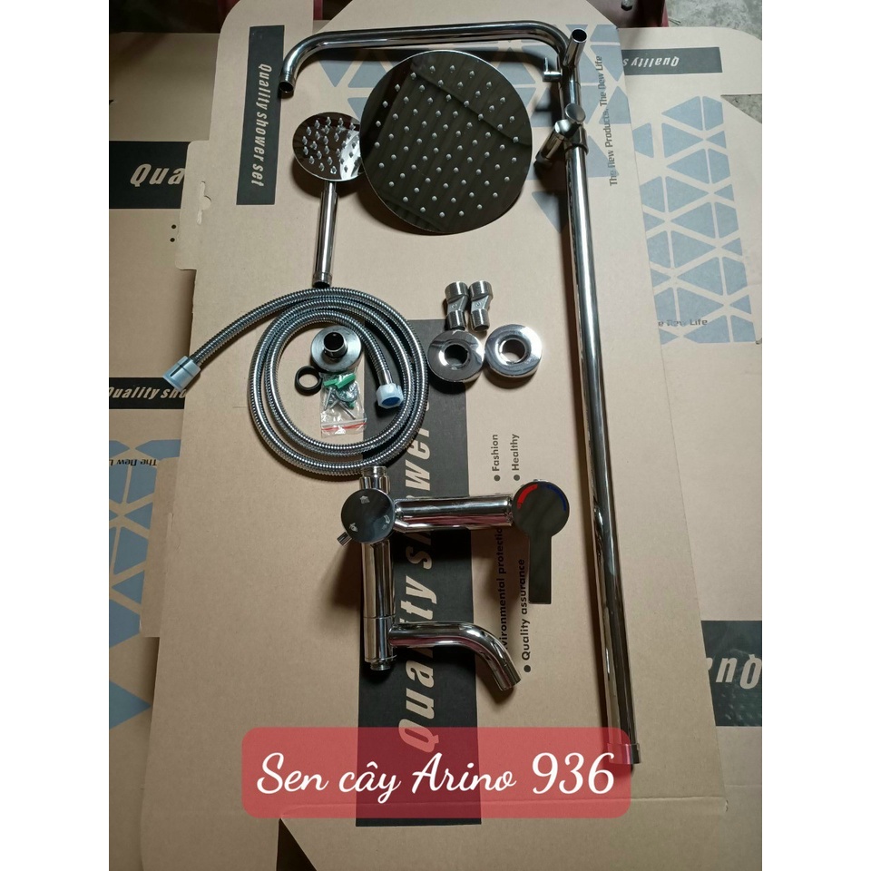 Bộ sản phẩm gồm: 1 củ sen, 1 dây dẫn nước, 1 tay sen, 1 bát sen, 1 ống đứng & các đầu ốc đi kèm.
