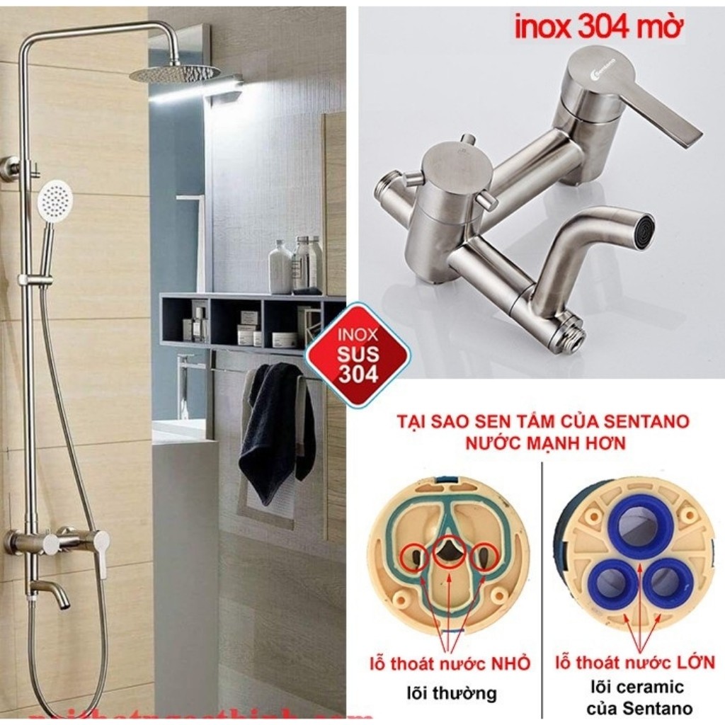 Sen Cây Tắm Đứng Nóng Lạnh Treo Tường Inox304 SENTO Hàng Cao Cấp Nhập Khẩu Chính Hãng